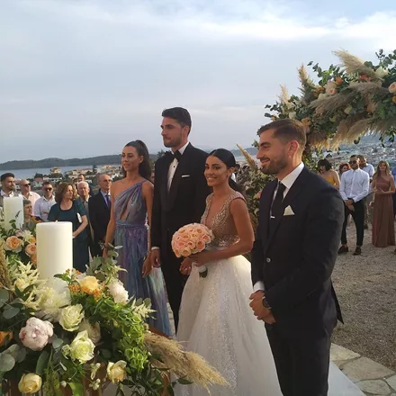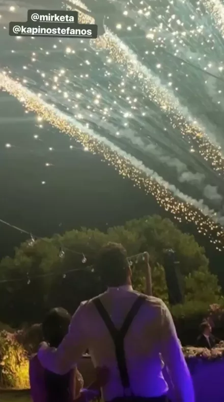 Όσον αφορά τη γαμήλια δεξίωση, πραγματοποιήθηκε σε γνωστό ξενοδοχείο της περιοχής, με τους νεόνυμφους να έχουν ετοιμάσει για τους καλεσμένους τους ένα πάρτι με πολύ χορό, πυροτεχνήματα, μουσική και καλό φαγητό.
