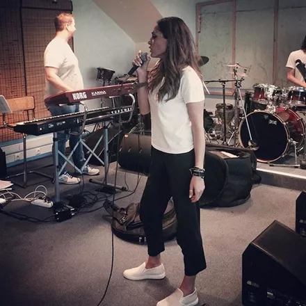 Έναν εναλλακτικό τρόπο να συνδυάσεις την suede φούστα σου προτείνει η Μαρία Ηλιάκη, που επενδύει σε έναν ζευγάρι sneakers σε έντονη απόχρωση και ένα λευκό top