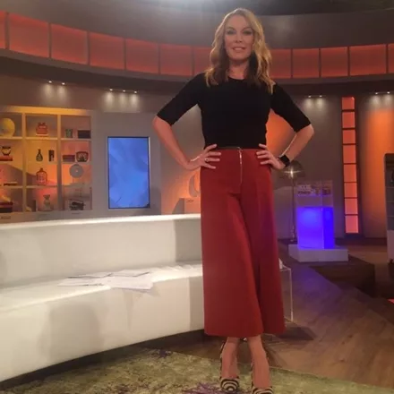 Για τις πρώτες της εκπομπές η Πόπη Τσαπανίδου επέλεξε ένα ψηλόμεσο παντελόνι και ένα λευκό κρουαζέ τοπ, για ένα κομψό office look, το οποίο με ένα ζευγάρι πέδιλα μεταμορφώνεται σε βραδινό
