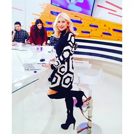 H Μαρία Μπακοδήμου ενέδωσε στον πειρασμό των over the knee μποτών συνδυάζοντάς τες με ένα ασπρόμαυρο printed φόρεμα, ιδανικό για όλες τις ώρες