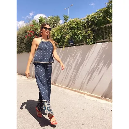 Μια άκρως καλοκαιρινή επιλογή έκανε η Κωνσταντίνα Σπυροπούλου, επιλέγοντας μια μίνι φουστίτσα, πλατφόρμες και ένα top