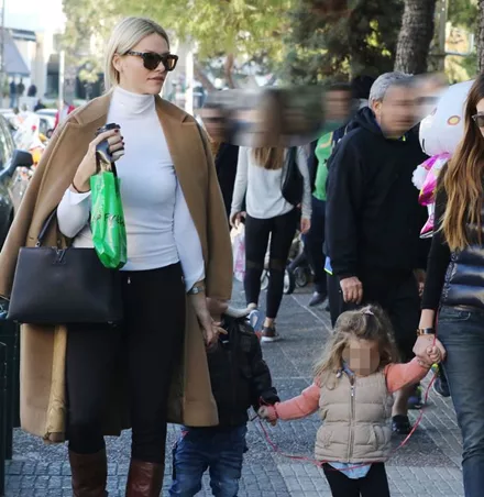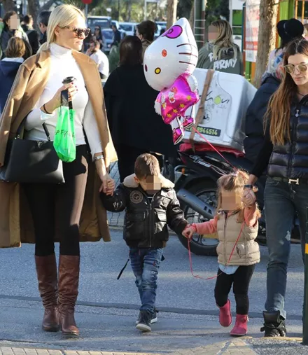 Το όμορφο μοντέλο και ο 3,5 χρόνων, Άρης έκαναν το καθιερωμένο τους καθημερινό περίπατο στα νότια προάστια, έχοντας στην παρέα τους τη φίλη του μικρού, την οποία μάλιστα ο μικρός, δεν σταμάτησε στιγμή να κρατά από το χεράκι.