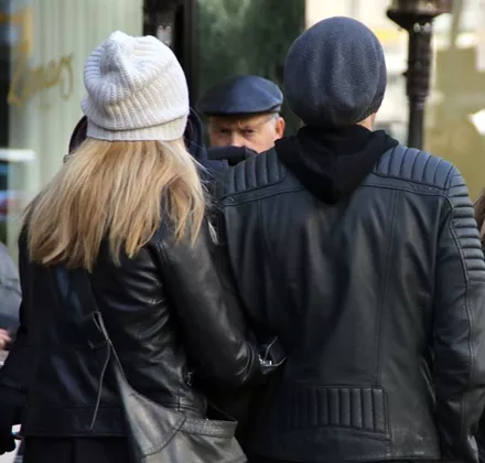 Στο κέντρο της Αθήνας και συγκεκριμένα στο Σύνταγμα απαθανάτισε ο φωτογραφικός φακός την Ντορέττα Παπαδημητρίου μαζί με το σύντροφό της, Αλέξανδρο Φρατζολίνι.