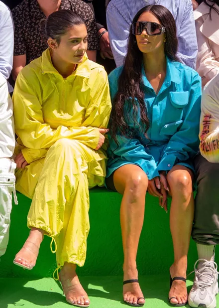 Η Kylie Jenner μαζί με την Kim Kardashian με έντονα χρώματα στο front row του show του Louis Vuitton.