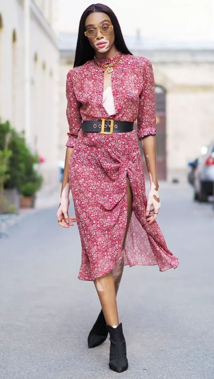 Η Winnie Harlow με φλοράλ φόρεμα Dior στο show του Dior Homme.