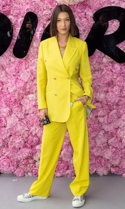 Η Bella Hadid με total κίτρινο look στο show του Dior Homme. Δες περισσότερα για το εντυπωσιακό look της εδώ.