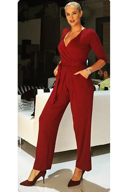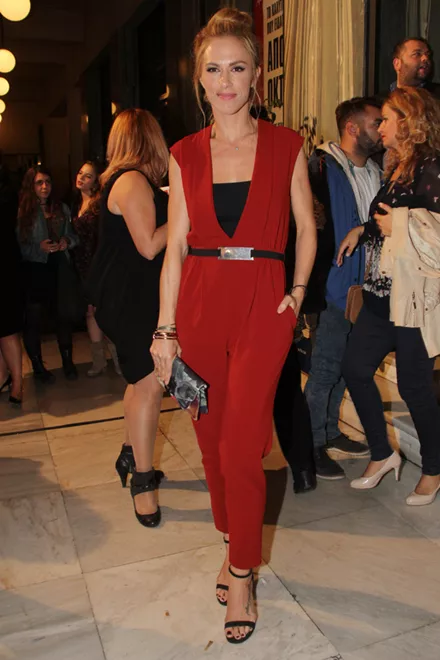 Η Έλενα Ασημακοπούλου συνδύασε την κόκκινη ολόσωμη φόρμα της με κόκκινες γόβες, δημιουργώντας ένα σέξι και εντυπωσιακό βραδινό look