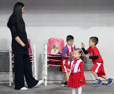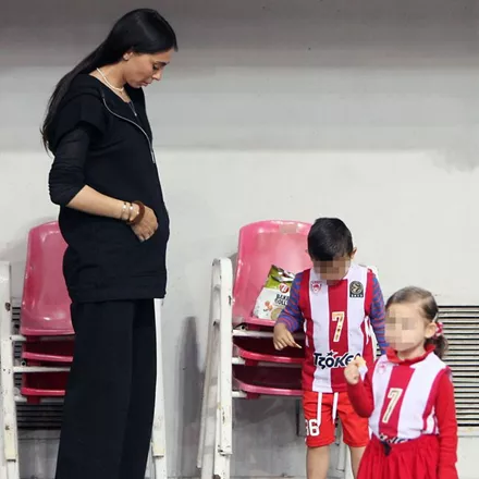 Την παράσταση όμως έκλεψε η μικρή Αιμιλία με την μπλούζα στα χρώματα του Ολυμπιακού, αλλά και η μαμά Ολυμπία της οποίας η κοιλίτσα έχει αρχίσει να φαίνεται.