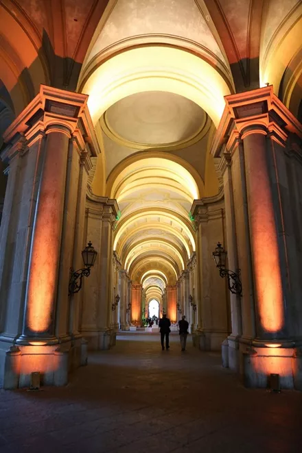 Η μαγευτική ατμόσφαιρα του ιδιαίτερου αυτού δείπνου, με τα εκλεκτά παραδοσιακά τοπικά εδέσματα, ταξίδεψε τους προσκεκλημένους στην εποχή 18ου αιώνα, αφού πραγματοποιήθηκε στα σαλόνια του πρώτου ορόφου των ανακτόρων, συνοδεία ζωντανής μουσικής από βιολιά, απαλού φωτισμού και φυσικά ανάμεσα στα γνήσια αριστουργήματα μπαρόκ τέχνης που διακοσμούν το μεγαλύτερο ανάκτορο της Ευρώπης.