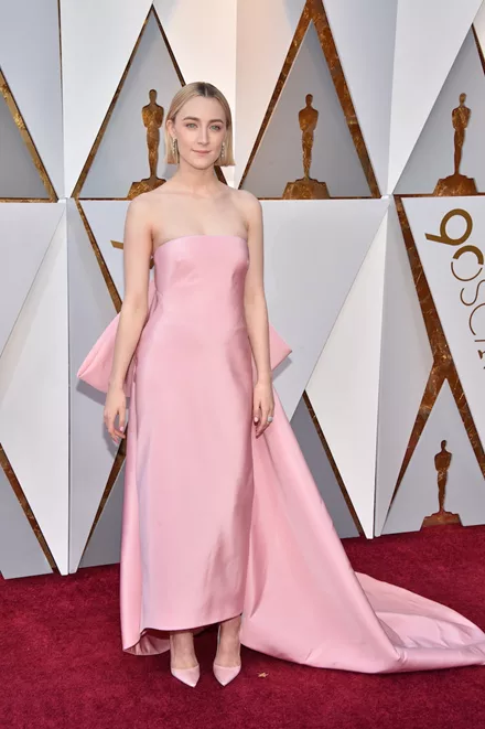 H Saoirse Ronan με φόρεμα Calvin Klein, γόβες Christian Louboutin, κοσμήματα Cartier και τσάντα Jimmy Choo