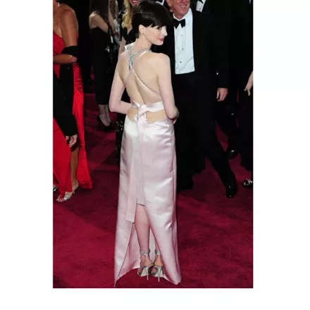 Η βραβευμένη πλέον με Όσκαρ Anne Hathaway παρέλαβε το βραβείο της μέσα ένα Prada φόρεμα το οποίο συνόδεψε με custom vegan Giuseppe Zanotti παπούτσια, Roger Vivier τσάντα και Tiffany κοσμήματα