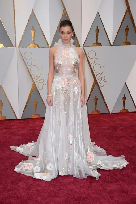Η Hailee Steinfeld με φόρεμα Ralph & Russo, κοσμήματα Neil Lane, παπούτσια Charlotte Olympia και clutch Judith Lieber.