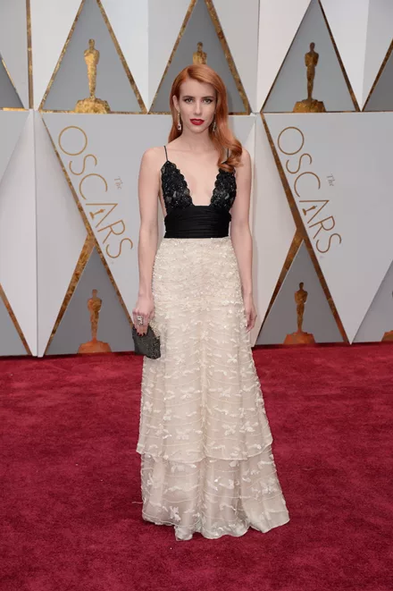 Η Emma Roberts με vintage Armani Prive φόρεμα και τσάντα και παπούτσια Armani shoes