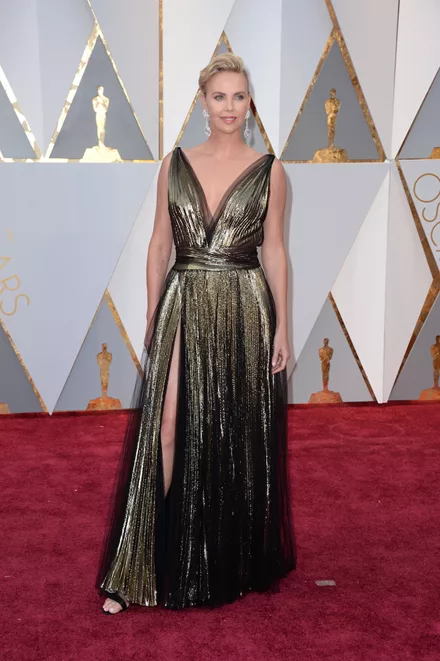 Η Charlize Theron κατέφτασε με χρυσό αρχαιοελληνικό φόρεμα Dior από τη συλλογή spring/summer 2017.