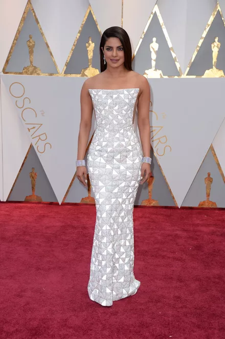 H Priyanka Chopra με φόρεμα Ralph & Russo και κοσμήματα Lorraine Schwartz.