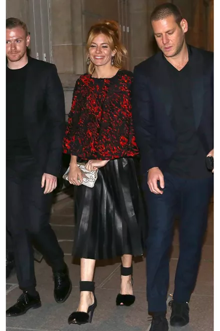 Η Sienna Miller έδειχνε κομψή και ιδιαίτερα ευδιάθετη με μίντι δερμάτινη φούστα και φαρδιά μπλούζα