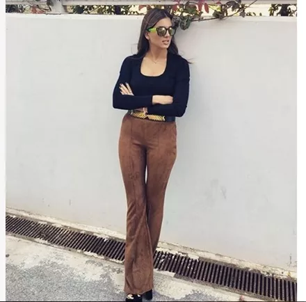 Τα πέδιλα είναι ιδανική επιλογή ακόμα και όταν έχεις επιλέξει να φορέσεις ένα flare παντελόνι, όπως η Σταματίνα Τσιμτσιλή