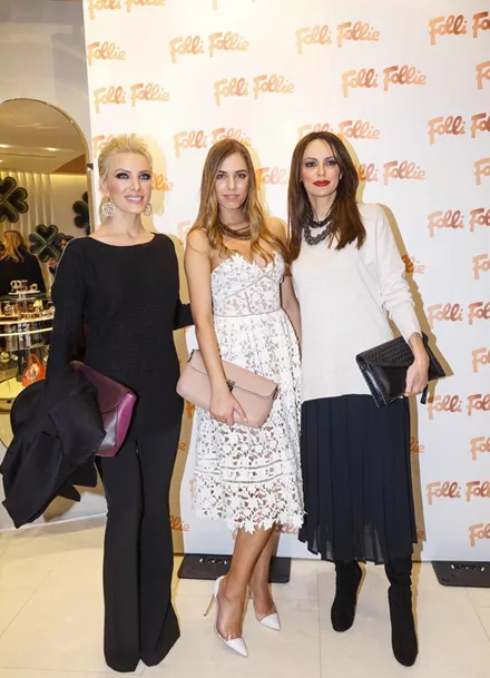 Ανάμεσα στους καλεσμένους της Folli Follie ήταν η Amber Le Bon, κόρη του lead singer των Duran Duran, που ταξίδεψε από το Λονδίνο για να δει από κοντά το νέο Concept Store του αγαπημένου της fashion brand, και η Τόνια Σωτηροπούλου. Με την παρουσία τους τίμησαν την Folli Follie και πολλοί εκπρόσωποι του καλλιτεχνικού χώρου όπως οι Ντορέττα Παπαδημητρίου, Αθηνά Οικονομάκου, Νικολέττα Ράλλη, Μπέτυ Μαγγίρα, Τζένη Μπαλατσινού, Κατερίνα Μυσιχρόνη, Μαρία Μπεκατώρου, Κατερίνα Καινούριου, Αντωνία Καλλιμούκου, Μαρία Ηλιάκη και Ναταλία Δραγούμη.