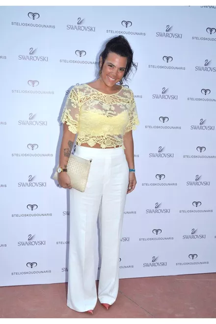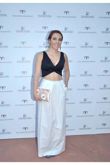 H Tάμτα με φόρεμα Stelios Koudounaris, σκουλαρίκια Swarovski και παπούτσια NAK
