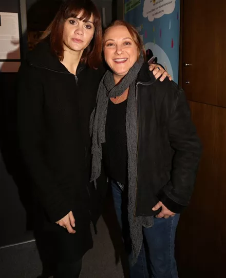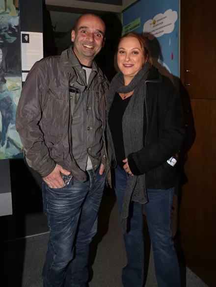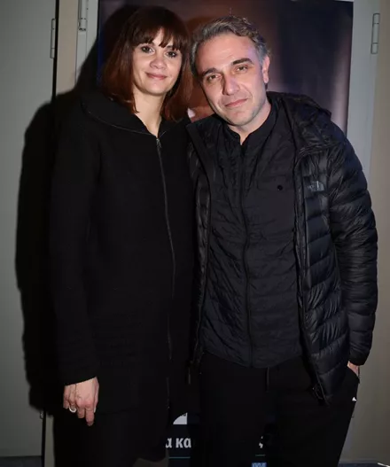 Ανάμεσά τους και ο σύντροφός της, Φάνης Μουρατίδης, ο οποίος μετά το τέλος της πρεμιέρας δεν αρνήθηκε να ποζάρει χαμογελαστός στον φακό.
