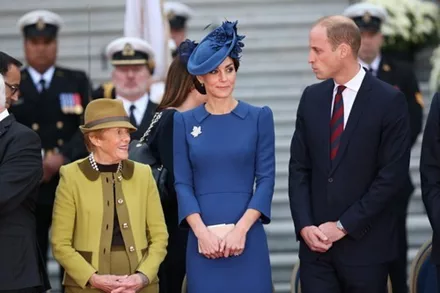 Η Kate επέλεξε να φορέσει ένα μπλε φόρεμα Jenny Packham, suede ψηλοτάκουνα, Gianvito Rossi, clutch τσαντάκι Nina Trench και την ίδια καρφίτσα με το σήμα που Καναδά, που είχε φορέσει στο αντίστοιχο ταξίδι το 2011.