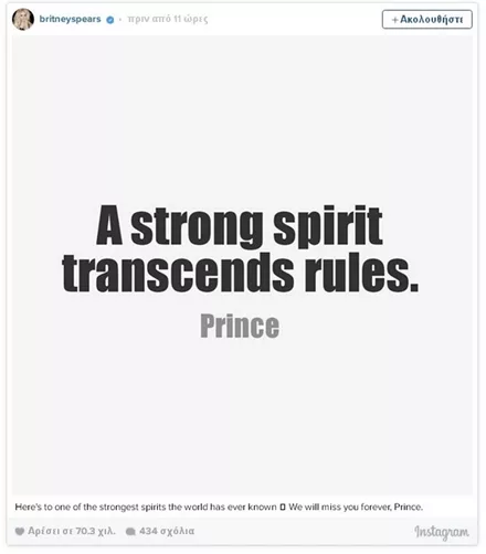 Beyonce, Mariah Carey, Justin Timberlake και Paul McCartney είναι μονάχα ελάχιστοι από τους διάσημους συναδέλφους του και celebrities που έκαναν σχετικές αναρτήσεις. Δες στην παρακάτω gallery αναλυτικά, όλα τα posts των σταρς για την μεγάλη αυτή απώλεια.