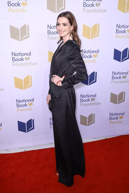 Η Anne Hathaway φόρεσε μία εντυπωσιακή σατέν τουαλέτα ενώ ολοκλήρωσε το look με statement σκουλαρίκια