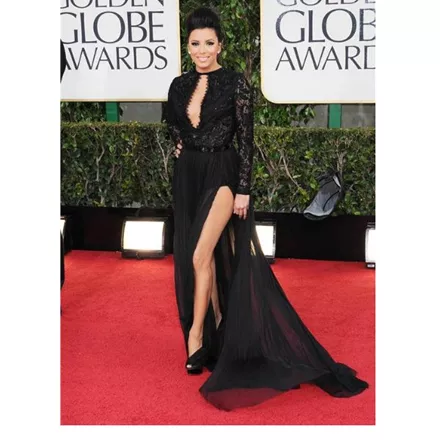H Eva Longoria έκανε μια άκρως αποκαλυπτική εμφάνιση με ένα μαύρο φόρεμα Emilio Pucci φτιαγμένο ειδικά για αυτήν το οποίο συνόδευσε με Charlotte Olympia παπούτσια και Martin Katz σκουλαρίκια