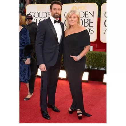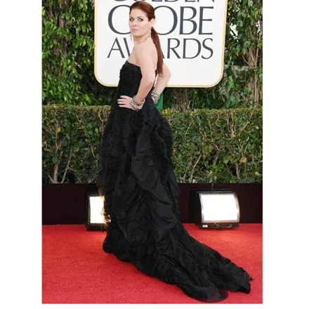 H Debra Messing επέλεξε Donna Karan Resort 2013 strapless τουαλέτα από οργάντζα, Rupert Sanderson παπούτσια, Samira 13 σκουλαρίκια και bracelet, ένα Amrapali bracelet και Salvatore Ferragamo clutch.