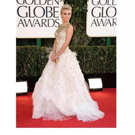 Η Julianne Hough με ονειρικό Monique Lhuillier φόρεμα, Jerome Rousseau παπούτσια, Daniella Villegas κοσμήματα και Salvatore Ferregamo clutch.