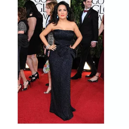 H Salma Hayek προτίμησε τον οίκο Gucci και ένα μαύρο strapless φόρεμα το οποίο συνδύασε με Tourmaline Cabochon σκουλαρίκια