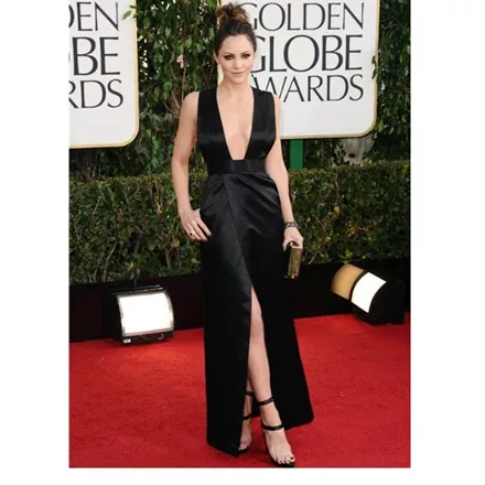 H Katharine McPhee φόρεσε μια μαύρη σατέν Theyskens’ Theory Spring 2013 τουαλέτα με αποκαλυπτικό μπούστο και κράτησε Oroton ‘Society’ clutch