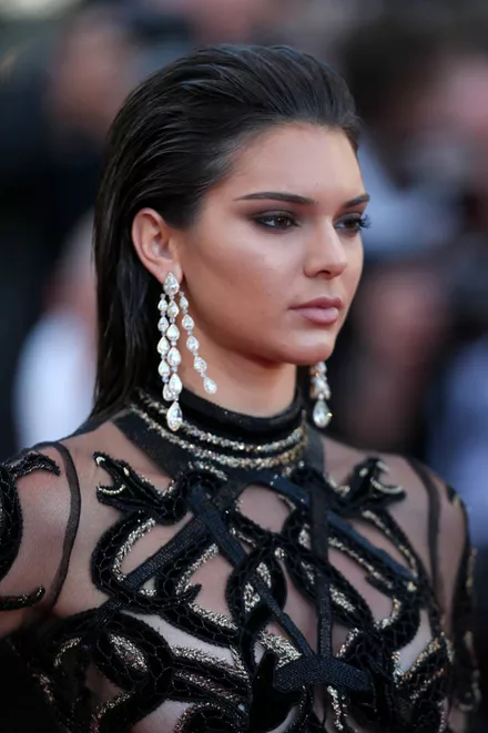 Η Kendall φόρεσε το ημιδιάφανο φόρεμα με τα περίτεχνα απλικέ σχέδια μαζί με επιλεγμένα κοσμήματα και προσεγμένο nude μανικιούρ