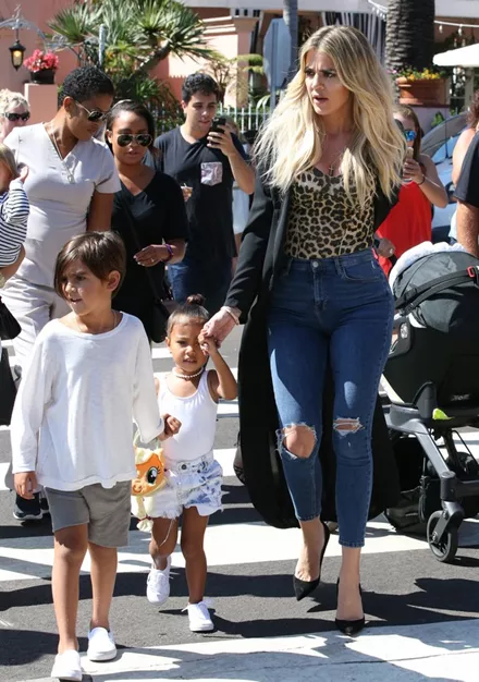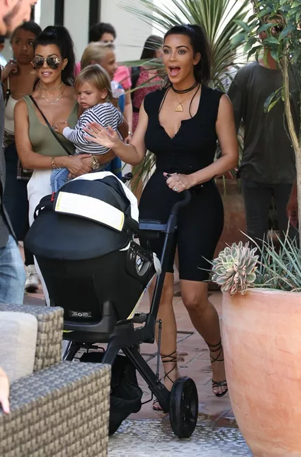 Άλλοτε στο καροτσάκι του και άλλοτε στην αγκαλιά της διάσημης μητέρας του, ο μικρός Saint, που πια έχει μεγαλώσει πολύ, μονοπώλησε το ενδιαφέρον και άφησε σε δεύτερη μοίρα την αδερφή και τα ξαδέρφια του.