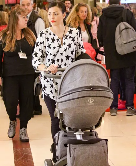 Σε γνωστό πολυκατάστημα των βορείων προαστίων απαθανάτισε ο φωτογραφικός φακός την Σίσσυ Φειδά μαζί με την πέντε μηνών κορούλα της και το σύζυγό της, Γιώργο Ανδρίτσο.