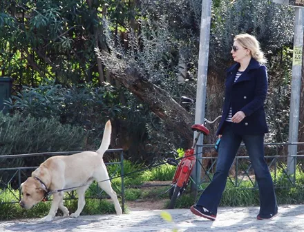 Ο φωτογραφικός φακός εντόπισε την Σμαράγδα Καρύδη και τον Θοδωρή Αθερίδη στην Πλάκα κοντά στο σπίτι της ηθοποιού να κάνουν βόλτα με το σκύλο τους εκμεταλλευόμενοι τον καλό καιρό.