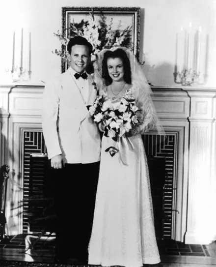 Στο γάμο της με τον James Dougherty τον Ιούνιο του 1942, σε ηλικία 16 ετών
