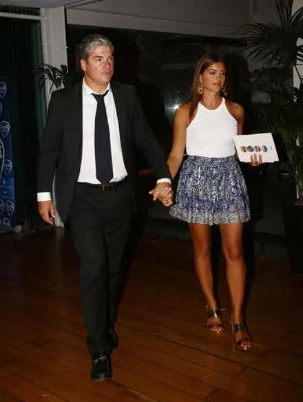 Ο φωτογραφικός φακός απαθανάτισε την Σταματίνα Τσιμτσιλή μαζί με τον σύζυγό της, Θέμη Σοφό να ποζάρουν ευδιάθετοι πιασμένοι χέρι-χέρι σε μια από τις σπάνιες βραδινές εξόδους τους.