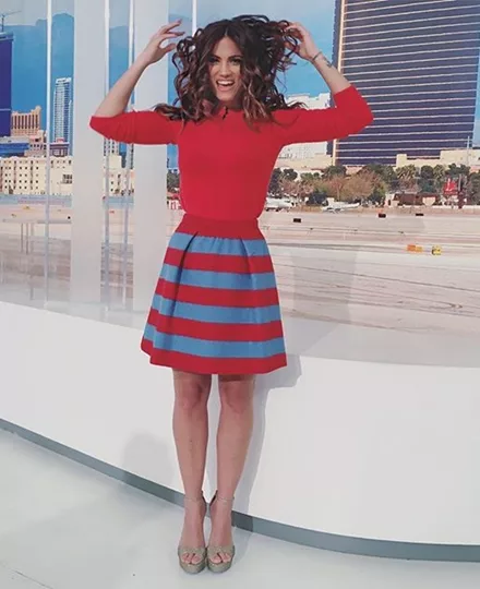 Έναν κλασικό συνδυασμό έκανε η Νάντια Μπουλέ, συνδυάζοντας τις ασπρόμαυρες ρίγες με το κόκκινο χρώμα. Ωστόσο, το γεγονός ότι τόλμησε ένα ριγέ shorts κερδίζει έξτρα πόντους