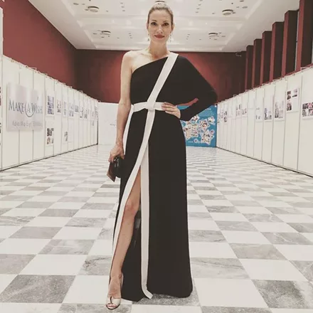 Ένα μακρύ φόρεμα με σκίσιμο και τον έναν ώμο εκτεθειμένο είναι η καλύτερη επιλογή για μια σέξι βραδινή εμφάνιση, όπως αυτή της Βίκυς Καγιά