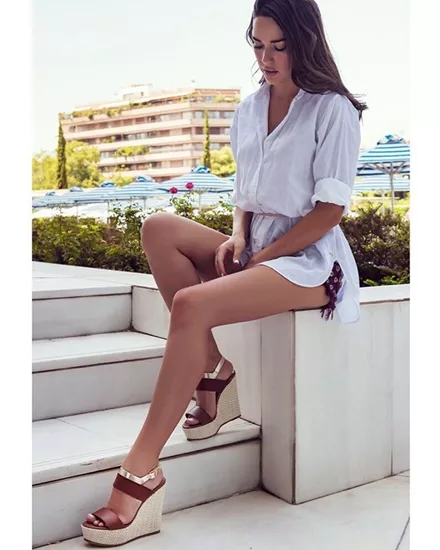 Η Ισμήνη Νταφοπούλου διατηρεί τις ισορροπίες συνδυάζοντας ένα σούπερ καυτό σορτσάκι με μια λευκή πουκαμίσα για καλοκαιρινές σέξι μα και κομψές εμφανίσεις