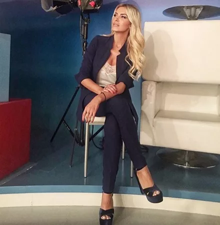 Το ανδρόγυνο στυλ αναδεικνύει ιδανικά η Κατερίνα Καινούργιου φορώντας ένα κοστούμι σε μπλε ρουά απόχρωση του brand Lynne