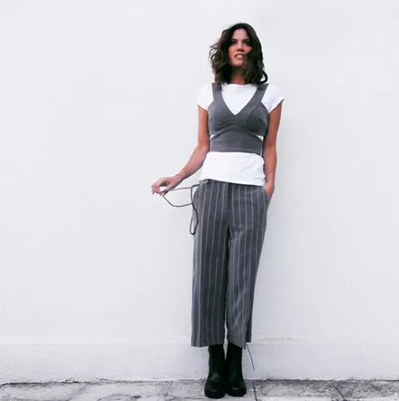 Πώς να φορέσεις το cropped top το φθινόπωρο για να είσαι μέσα στην μόδα. Ακολούθησε την '90s τάση και συνδύασέ το με ένα λευκό τοπ, όπως η Μαίρη Συνατσάκη
