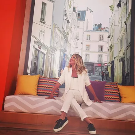 Το total white συναντάει το ανδρόγυνο και όλο μαζί δημιουργεί μια κομψή εμφάνιση, που η Μαρία Ηλιάκη ξέρω πώς να υποστηρίξει ακόμα και με sneakers