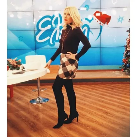 Ιδιαίτερα σέξι η Σταματίνα Τσιμτσιλή αναδεικνύει την αψεγάδιαστη σιλουέτα της με ένα midi φόρεμα ενώ την διαφορά κάνουν τα animal print παπούτσια της