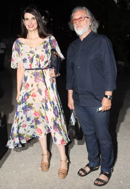 Η Στέλλα Καπεζάνου έδωσε την απαραίτητη δόση χρώματος με ένα κόκκινο τοπ αλλά και λάμψης με metallics πέδιλα και ethnic φάκελο