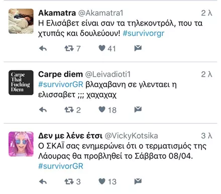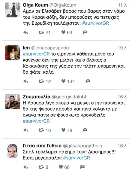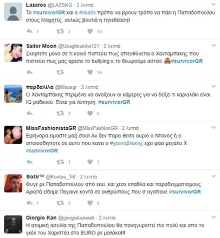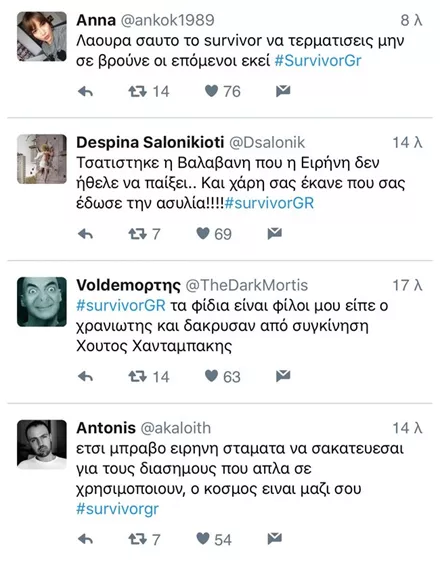 Η «μαχητικότητα» στο αγώνισμα της Λάουρα , η στάση της Ειρήνης Παπαδοπούλου τα τελευταία επεισόδια αλλά και η συμπεριφορά του Στέλιου Χανταμπάκη ήταν μερικά από τα γεγονότα που έδωσαν τροφή στους χρήστες.