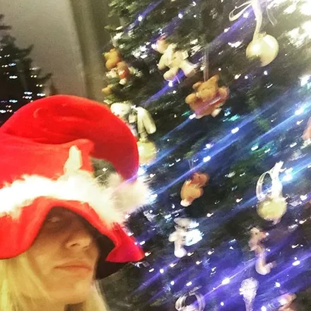Η Ελεωνόρα Μελέτη, φωτογραφίζεται μαζί με το Χριστουγεννιάτικο δέντρο της, φορώντας τον σκούφο του Άγιου Βασίλη