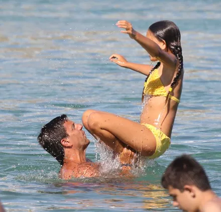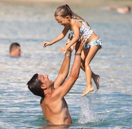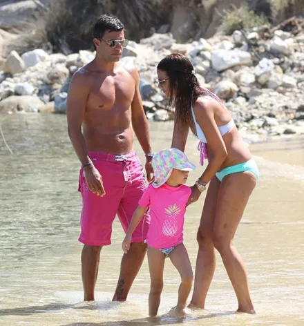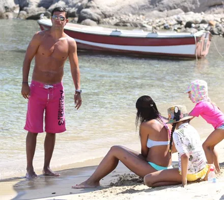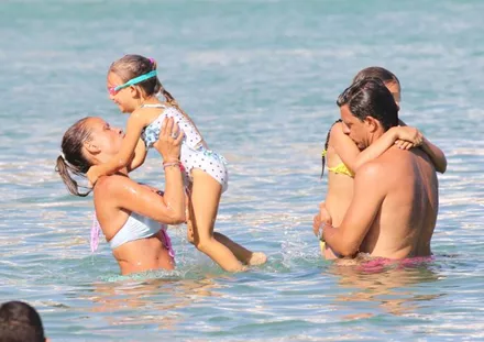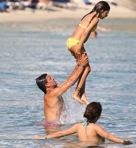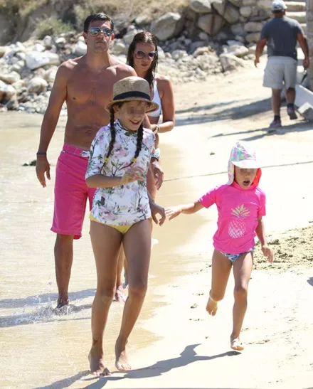 Ο φωτογραφικός φακός εντόπισε την οικογένεια την ώρα που απολάμβανε χαρούμενες οικογενειακές στιγμές σε παραλία του νησιού.