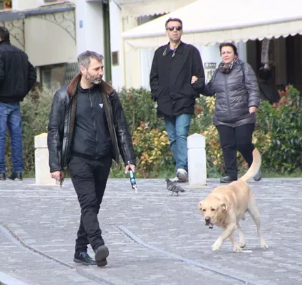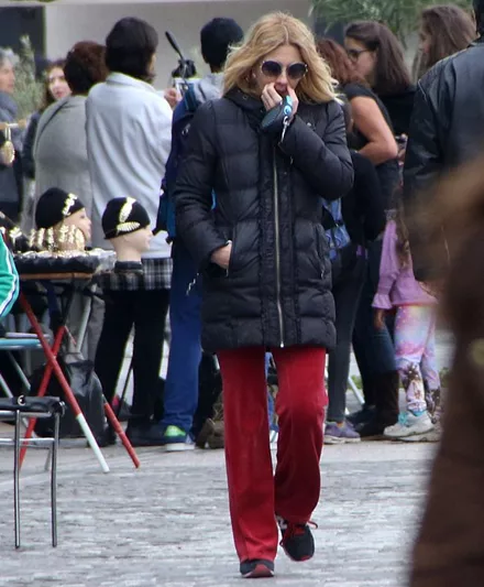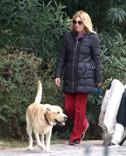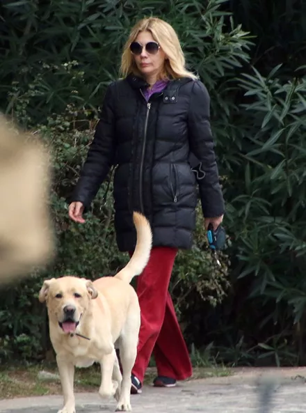 Την Σμαράγδα Καρύδη μαζί με το σύντροφό της, Θοδωρή Αθερίδη απαθανάτισε ο φωτογραφικός φακός να κάνουν βόλτα στη γειτονιά τους, στην Πλάκα, έχοντας συντροφιά τον αγαπημένο τους σκύλο, Γιάννη.